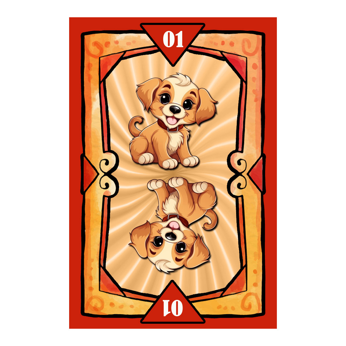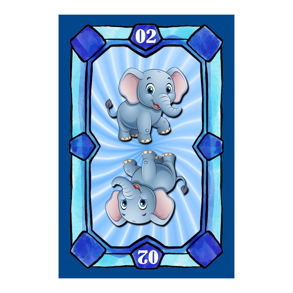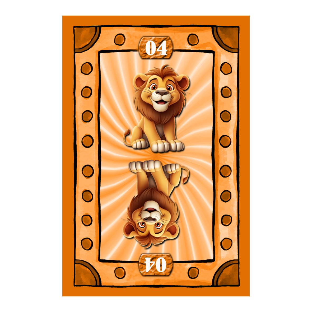 - São 70 cartas divididas entre 6 animais: leão, elefante, cachorro, gato, rato, e o macaco que é a carta coringa.